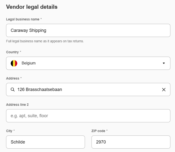 Enter vendor’s legal details: