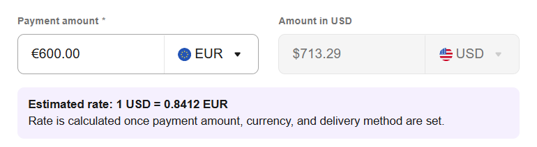 Both the USD amount that is deducted from your account and the amount in the foreign currency your vendor gets are clearly indicated.