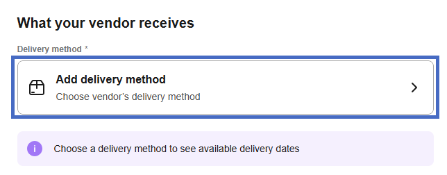 - Select +Add to add a new delivery method. Enter the additional delivery method in the vendor details.